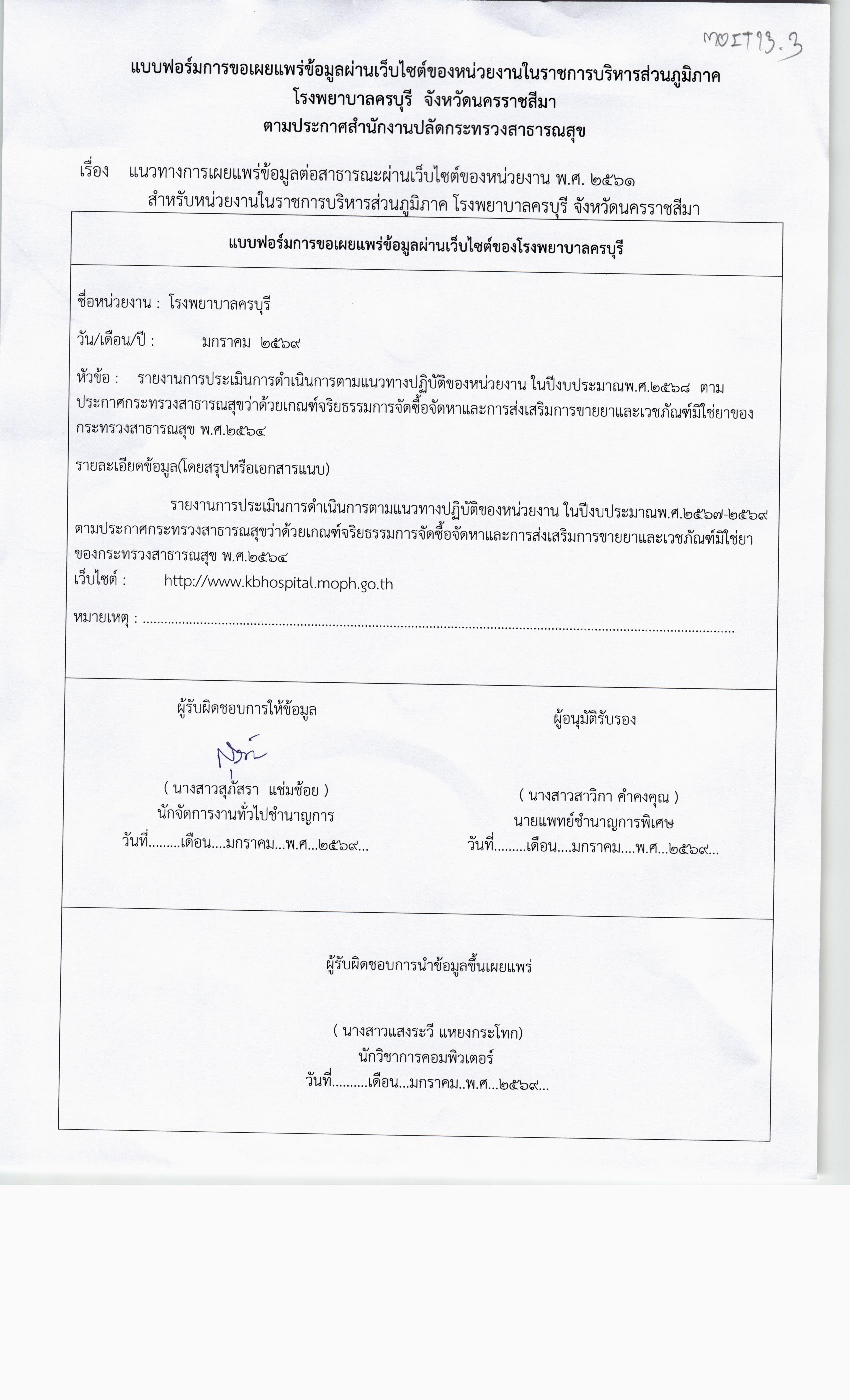 2.1 บันทึกข้อความเสนอผู้บริหารสูงสุดของหน่วยงาน เพื่อขอความเห็นชอบอนุมัติและลงนามในรายงานผลตามแผนปฏิบัติการส่งเสริมคุณธรรมของชมรมจริยธรรมของหน่วยงาน ประจำปีงบประมาณ พ.ศ. 2569 และมีการขออนุญาตนำไปเผยแพร่บนเว็บไซต์ของหน่วยงาน ดาวน์โหลด