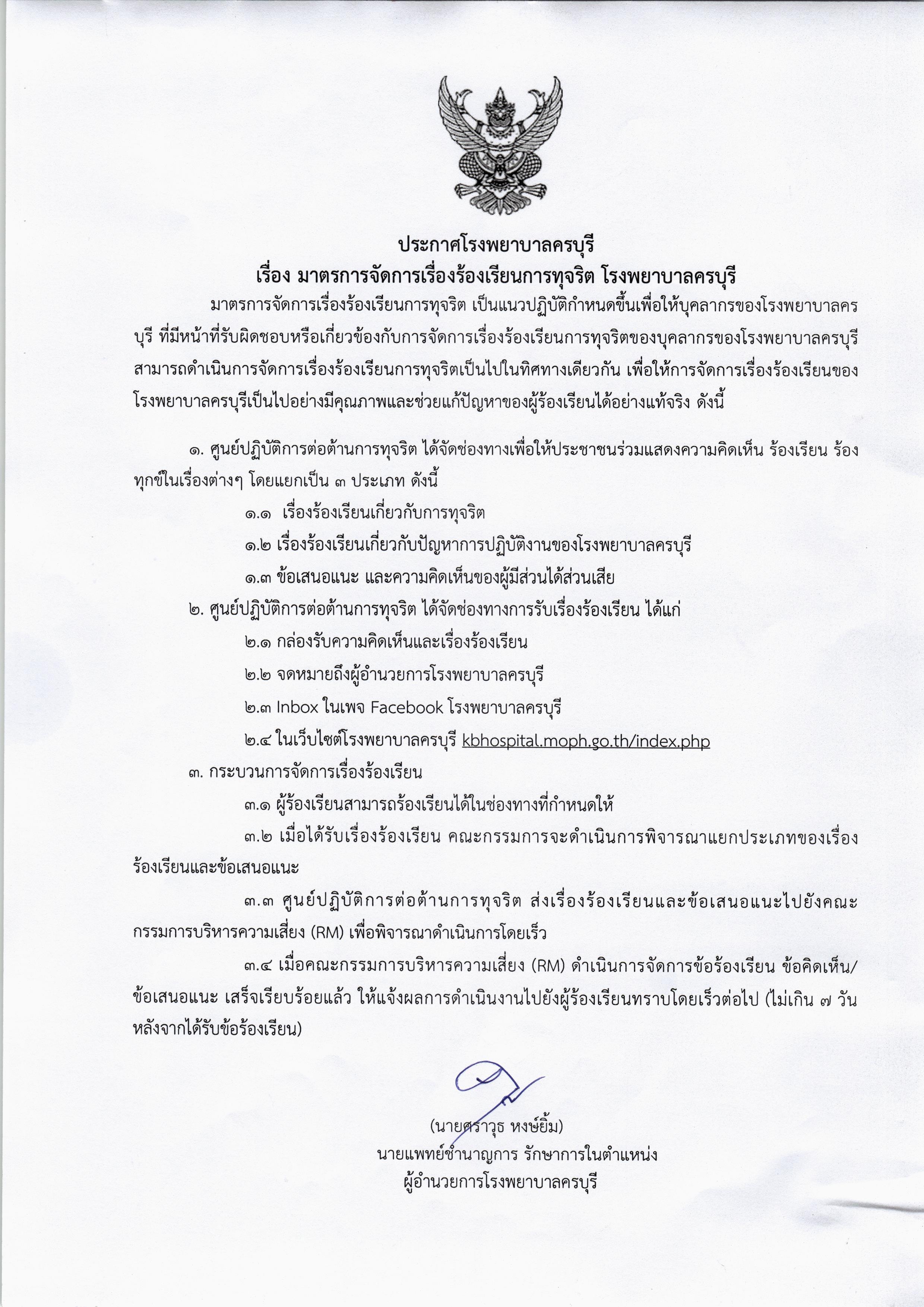 1. มีบันทึกข้อความ ที่ผู้บริหารลงนามรับทราบรายงานสรุปผลการดำเนินงานเรื่องร้องเรียน ตามข้อ(1)และข้อ(2) ที่มีการวิเคราะห์ปัญหา /อุปสรรคและแนวทางแก้ไข และมีการขออนุญาตนำไปเผยแพร่บนเว็บไซต์ของหน่วยงาน  ดาวน์โหลด